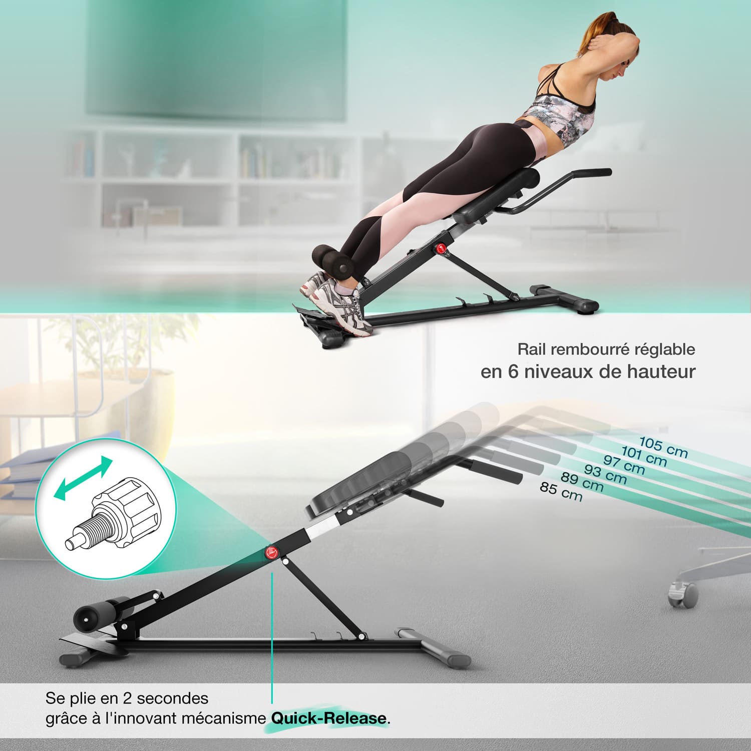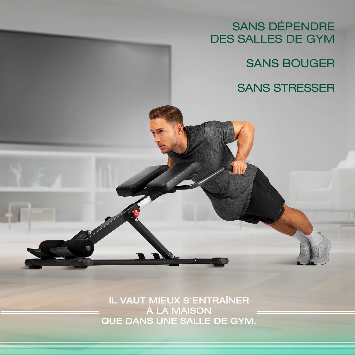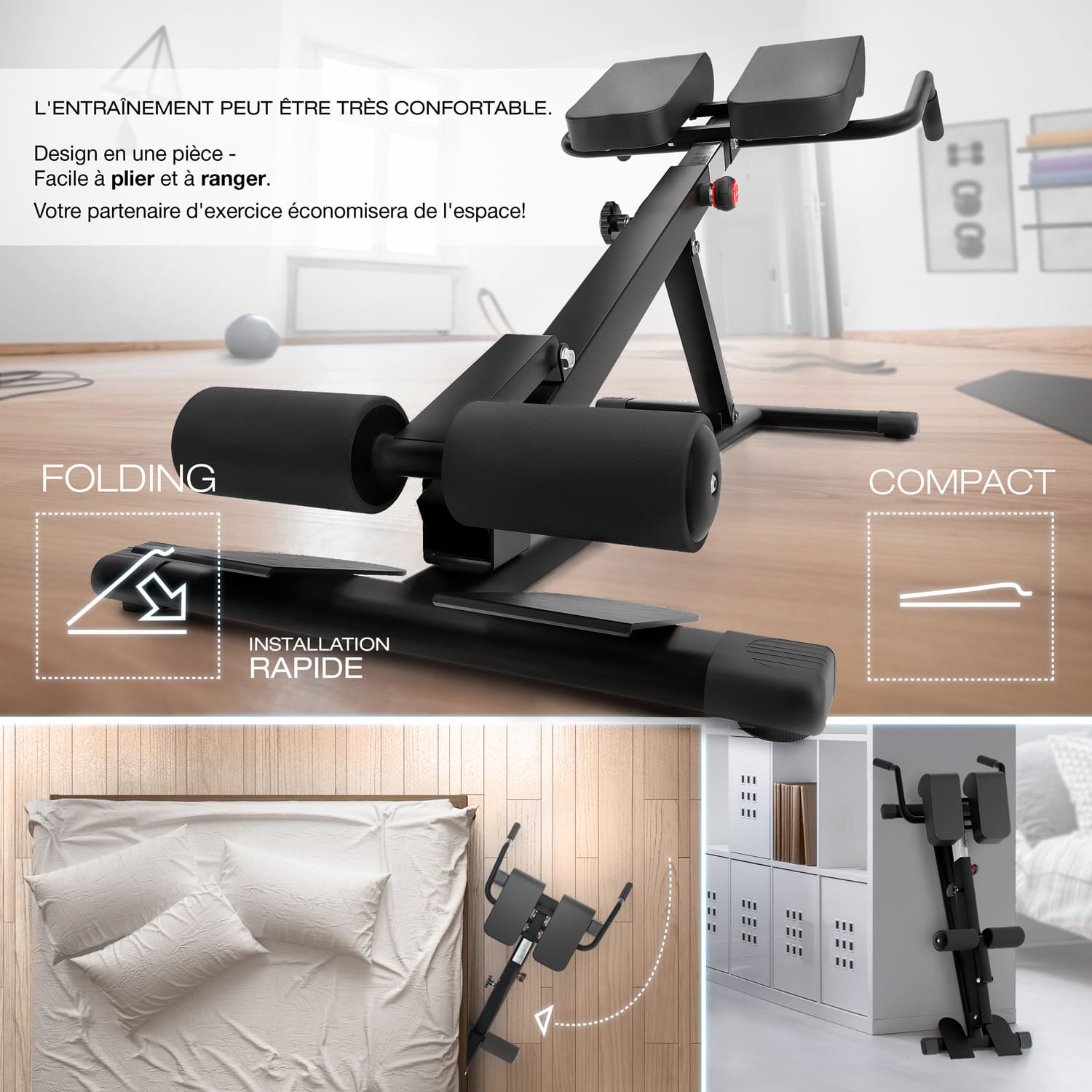 Doté d’un coussin ergonomique, de poignées de support et d’un repose-pieds flexible, il garantit stabilité et sécurité. Son système de pliage ultra-compact facilite le rangement. Idéal pour un travail musculaire ciblé, le PowerBack est l’allié parfait pour un entraînement efficace à domicile.