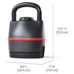 • Remplace 6 kettlebells traditionnelles (3,5 / 5,5 / 9 / 11 / 16 / 18 kg)