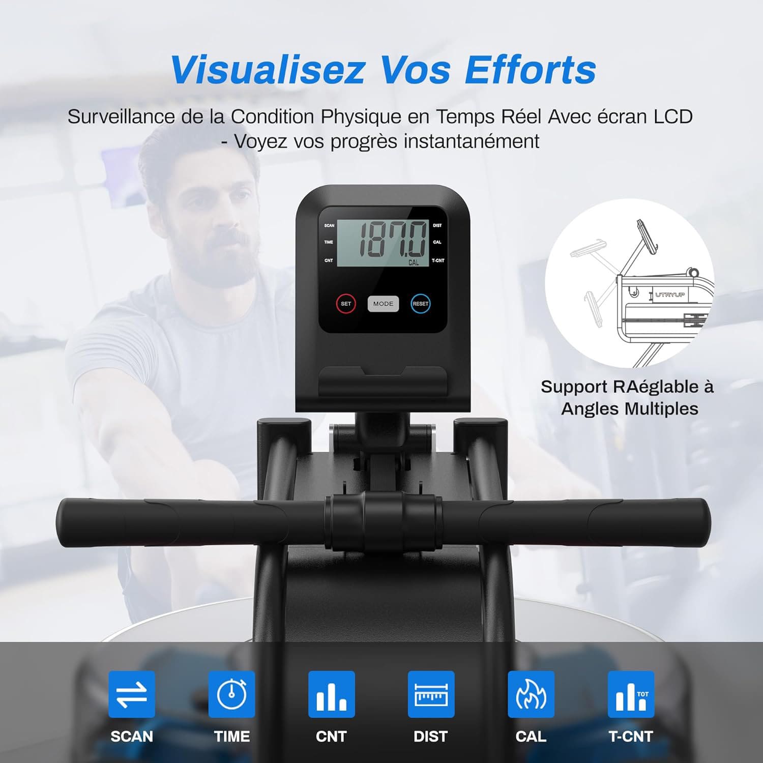 Profitez d'une sensation de rameur authentique grâce au réservoir d'eau scellé en polycarbonate de qualité aérospatiale. Son design unique et ses 12 lames multi-pales garantissent une résistance fluide et progressive, simulant parfaitement la sensation d’aviron en extérieur.