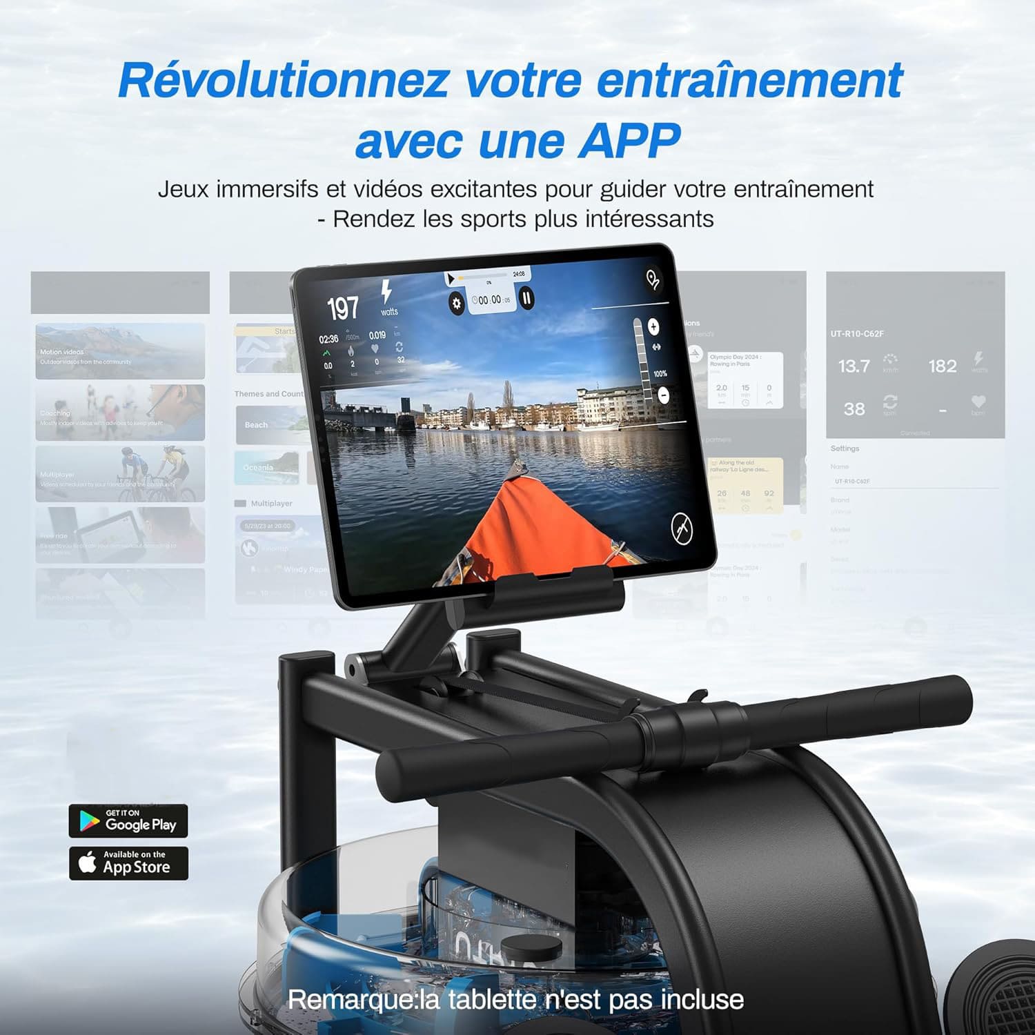 Le support tablette intégré permet de regarder des vidéos ou suivre des séances interactives pour une expérience plus motivante et engageante.
