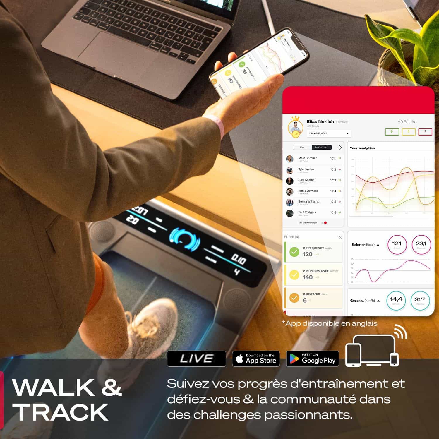 HomeSport affiche les données de performance en un coup d'œil. Suivez votre progression et dépassez-vous !