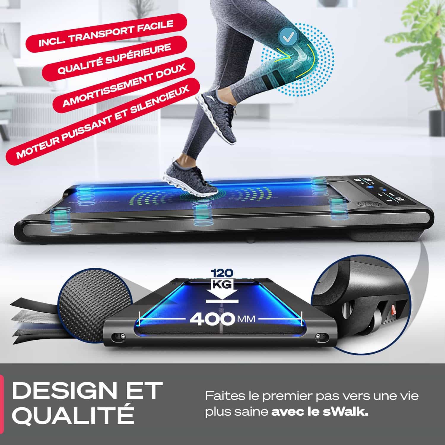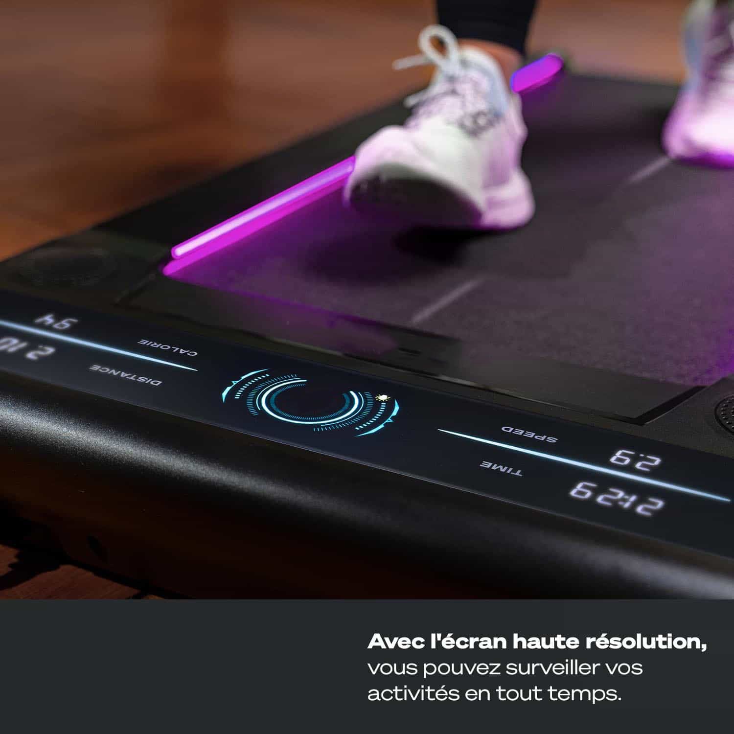 Découvrez le Lite Mini, le tapis de course compact et intelligent conçu pour la maison ou le bureau. Avec une vitesse ajustable de 1 à 6 km/h, des roulettes de transport intégrées et un écran LCD intuitif, il vous aide à intégrer facilement la marche dans votre quotidien. Connectez-vous à l’application HomeSport via Bluetooth pour suivre vos performances et rester motivé.