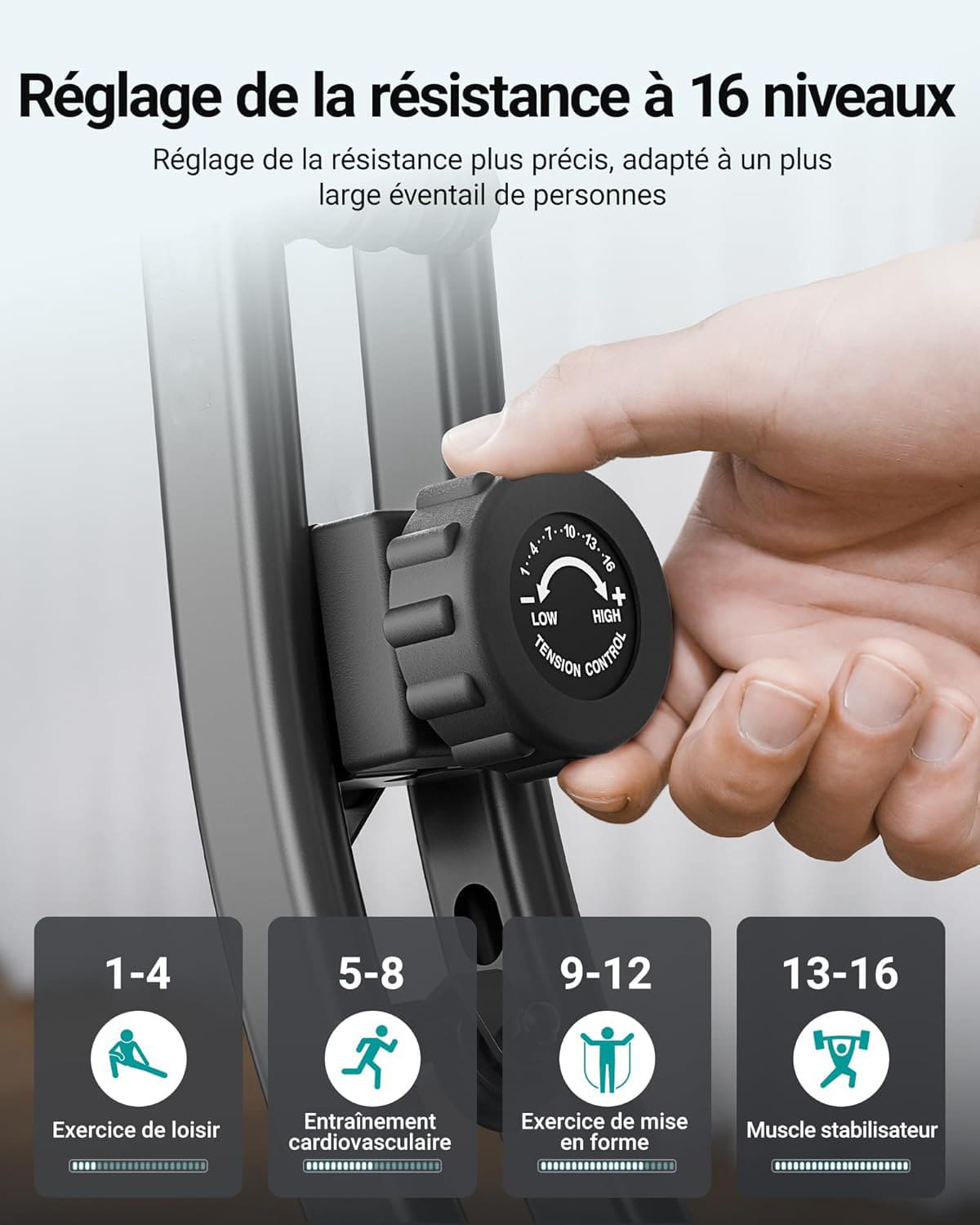 16 niveaux de résistance magnétique : Ajustez l’intensité selon vos besoins, de la rééducation au renforcement musculaire.