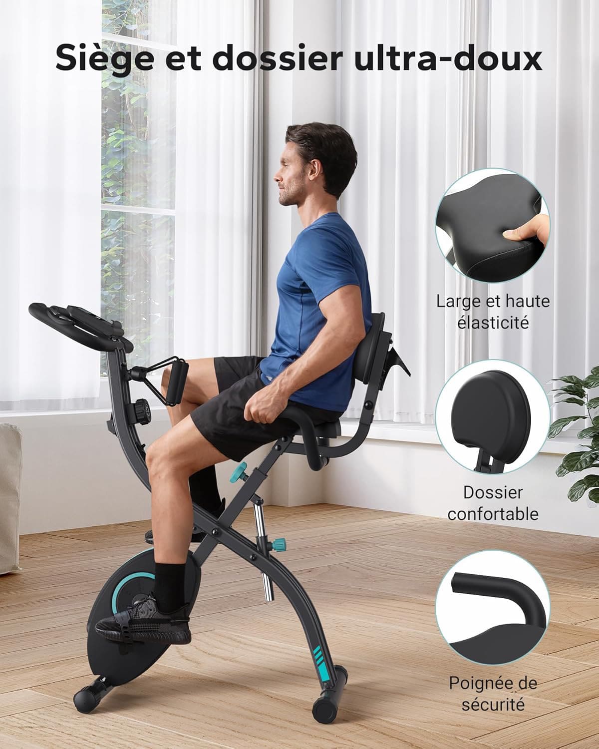 Bandes de résistance intégrées : Permettent de solliciter les muscles du haut du corps en complément du pédalage.